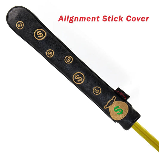 Black & Gold Dollar Sign Design Leather Golf Alignment Stick Cover