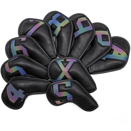 Black Waterproof Leather Number Golf Iron Head Covers 10pcs