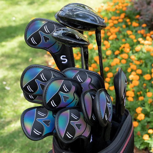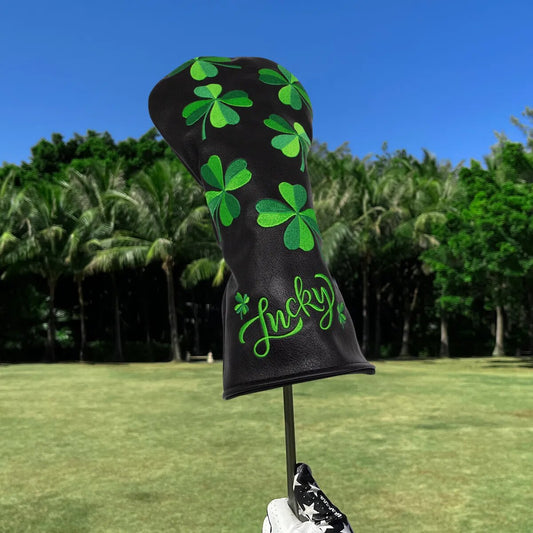 Black Lucky Themed Leather Golf Club Head Covers Driver, Wood, Hybrid, Mallet & Blade Putter