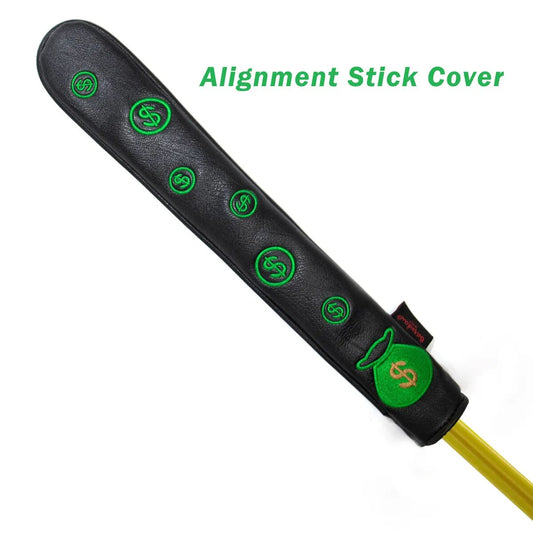Dollar Sign Design Black Leather Golf Alignment Stick Cover