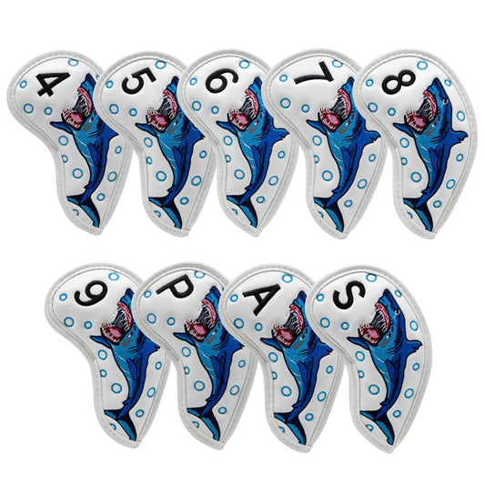 Colorful Sharks Leather Irons & Wedges Golf Club Head Covers 10pcs/set
