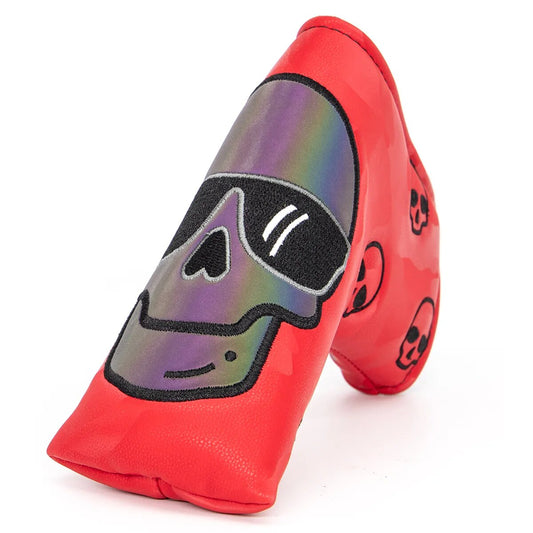 Red Leather Skull Golf Blade Putter Head Cover with Magnetic Closure