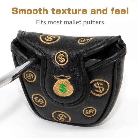 Black Leather Dollar Sign Design Mallet Putter Head Cover with Magnetic Closure