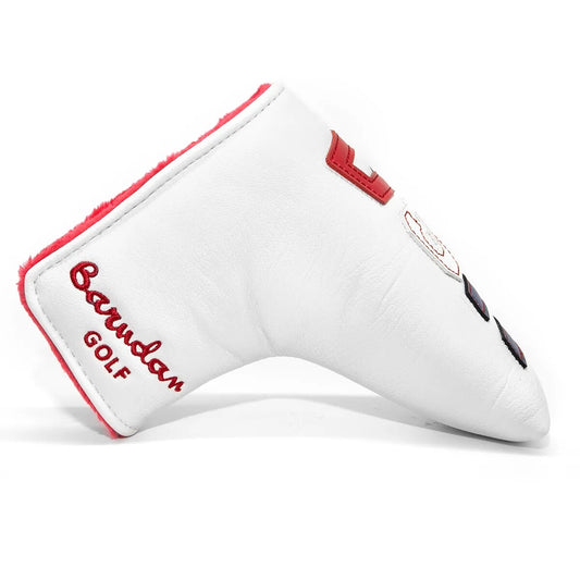 USA Embriodered White Leather Golf Blade Putter Head Cover With Magnetic Closure