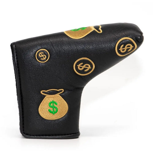 Gold Cash Money Black Leather Blade Golf Putter Head Cover with Magnetic Closure