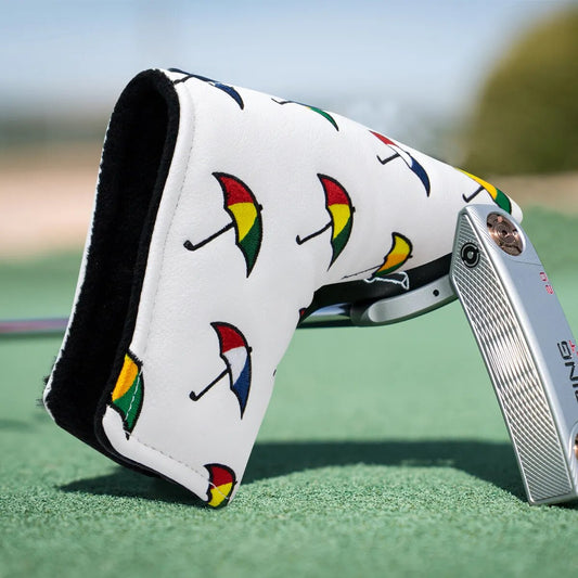 Arnold Palmer Umbrella Themed White Leather Golf Blade Putter Head Cover with Magnetic Closure