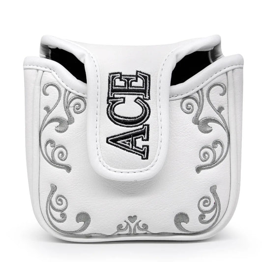 ACE Of Spades Playing Cards White & Black Leather Golf Mallet Putter Head Cover