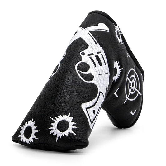 "One Putt" Black Leather Golf Blade Putter Head Cover with Magnetic Closure